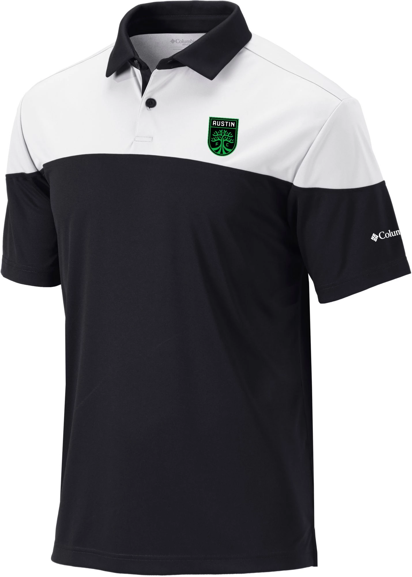 - Flat knit collar and two-button neck placket