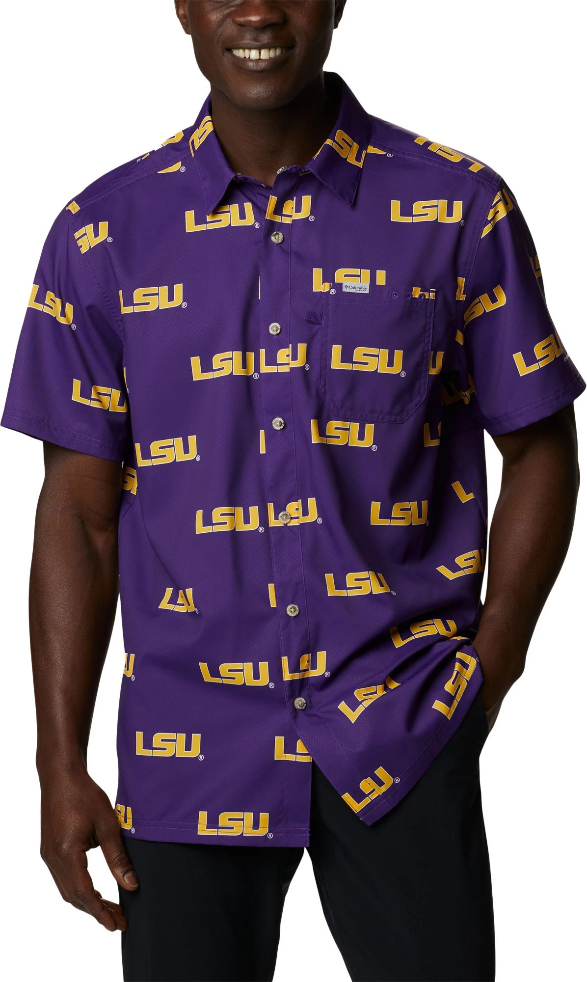 Columbia Men’s LSU Tigers Purple Super Slack Button Down Shirt