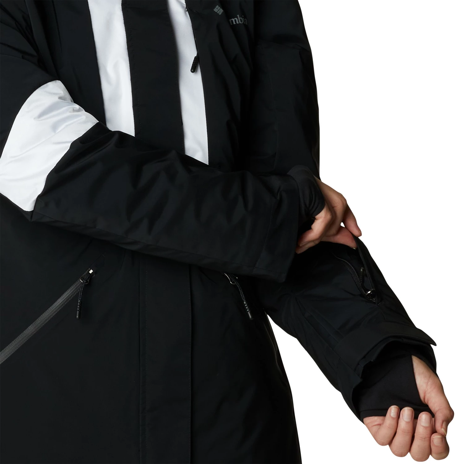 - Adjustable arm cuffs with thumb hole