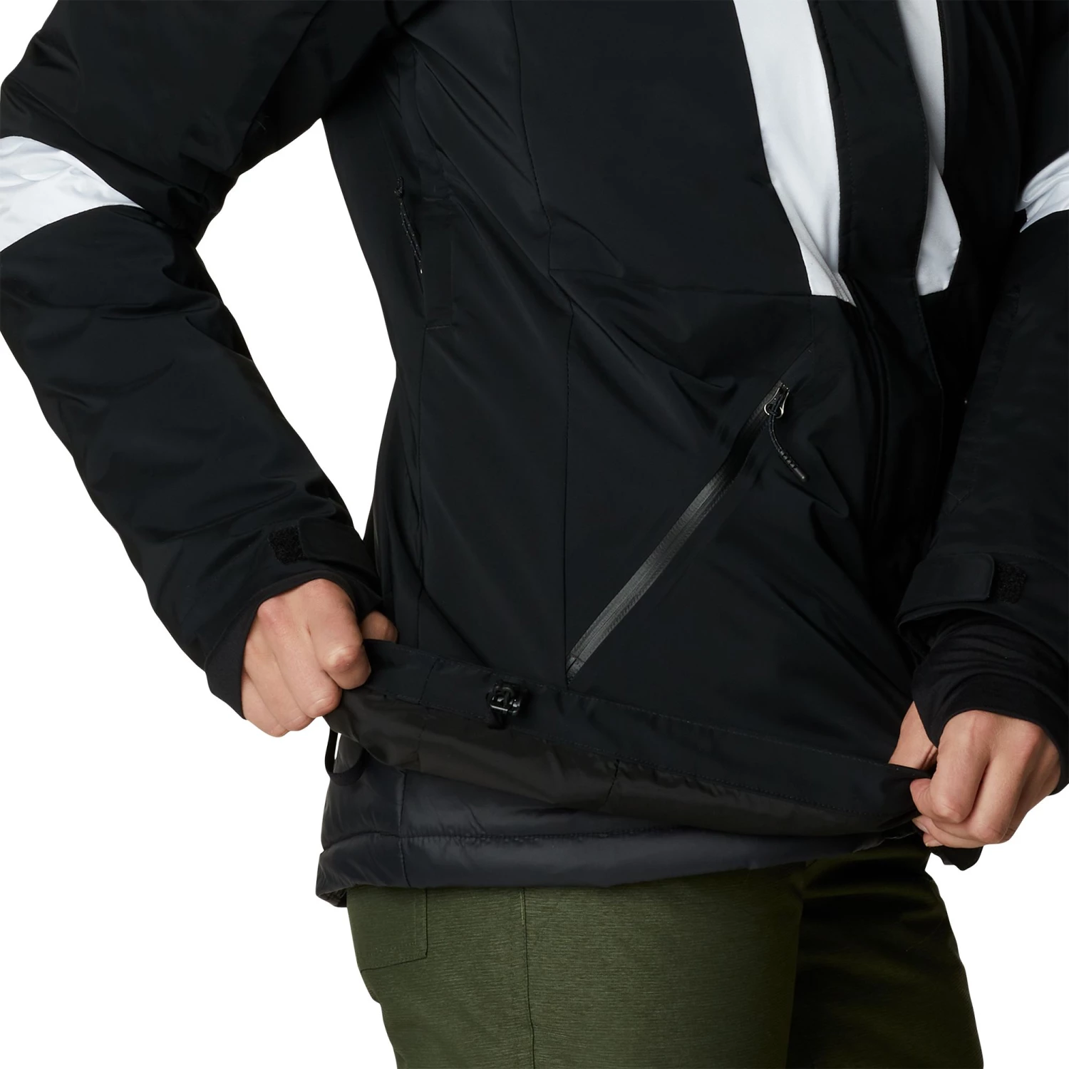 - Equipped with zippered hand pockets, as well as chest, ski pass, and media and goggle pockets that hold all of your necessary items