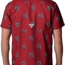 Columbia Men’s South Carolina Gamecocks Garnet Plaid Flare Gun Flannel Button Down Long Sleeve Shirt
